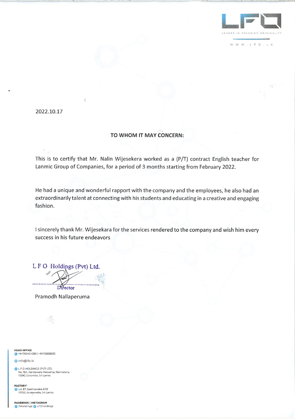 I was blessed with such wonderful parents who knew the value of having the ability to communicate in English. Myself and my siblings were not permitted to talk in my native language at home. I am a past student of Nalanda and Ananda College Colombo, but every subject was taught in Sinhalese and English was just a 40-minute period for the day which is not sufficient to be competent to communicate in English.